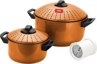 Посуда оснащена термодатчиками на крышках, что делает ее очень удобной в эксплуатации. Три режима термодатчика позволяют с легкостью задать уровень температуры: