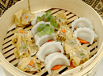 Бамбуковые емкости можно не только использовать по назначению, но и ставить на стол в качестве сервировочных корзинок. Обычно это делается в том случае, когда бамбуковые коробочки совсем маленькие, рассчитанные на одну порцию. Такая пароварка представляет собой круглую коробку из бамбуковой соломки с решетчатым дном и плетеной крышкой. Она может быть больших размеров и маленькой, для порционных блюд. В этом случае, пароварка вместе с пищей подается на стол, чтобы сок из продуктов не стекал, на дно кладут кусочек вощеной бумаги.