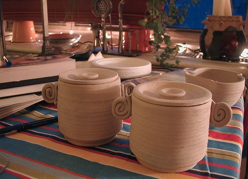 Пища в такой посуде особенно ароматна и вкусна, это самое экологически безопасное, но не дешевое средство для готовки. Черная (дымленая) керамика тоже годится для этой цели, а вот глазурованная, как правило, имеет строго определенный спектр задач, и перед покупкой неплохо бы выяснить, для каких. Часто глазурь содержит пережженный свинец, который категорически нельзя подвергать термическому воздействию - в разогретой духовке такой глиняный горшок станет активно испарять вредные вещества. К счастью, для хранения продуктов такая глазурь совершенно безопасна, главное - не нагревать горшок...