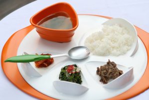 Столовый набор называется «The See With Fingertips» (Видеть кончиками пальцев) и состоит их подноса с тарелкой для пяти блюд. Тарелка имеет ниши с высокими закруглёнными бортиками, которые обеспечивают удобное зачёрпывание пищи ложкой. На одной тарелке умещается гарнир, соус, основное блюдо, а вот суп подается в отдельной треугольной чашке.